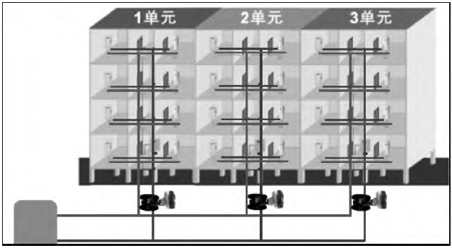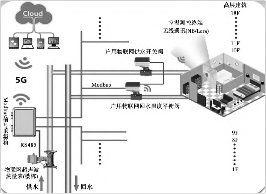 單管串聯(lián)和雙管垂直系統(tǒng)。公共立管在居民家中,入戶改造影響居民生活,實(shí)施難度高,改造后效果不明顯。所以改造從熱源實(shí)施到樓棟入口,即在典型住戶、典型位置安裝智能室溫采集器,樓棟/單元熱力入口設(shè)置物聯(lián)網(wǎng)平衡閥,實(shí)現(xiàn)樓棟單元間的精準(zhǔn)調(diào)控。詳見(jiàn)圖3。