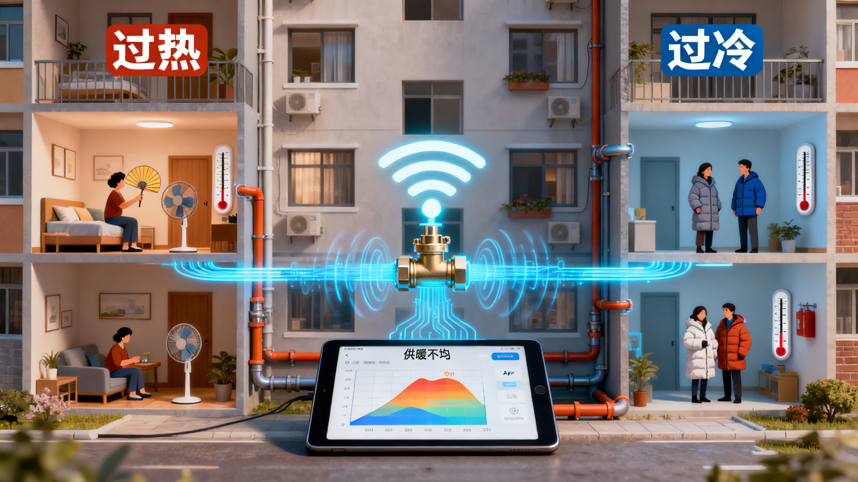 想象一下,我們的供暖管道如同人體的血液循環(huán)系統(tǒng)。熱水就是血液,需要被均勻地輸送到每個房間(末端,如暖氣片或地暖盤管)。水利失衡就是指,由于管道長度、阻力不同等原因,導致離熱源(鍋爐或換熱站)近的“近端”循環(huán)過快,水流過大,房間過熱;而離熱源遠的“遠端”循環(huán)不暢,水流過小,房間冰冷。這不僅造成了用戶體驗差,更導致了大量的能源浪費。